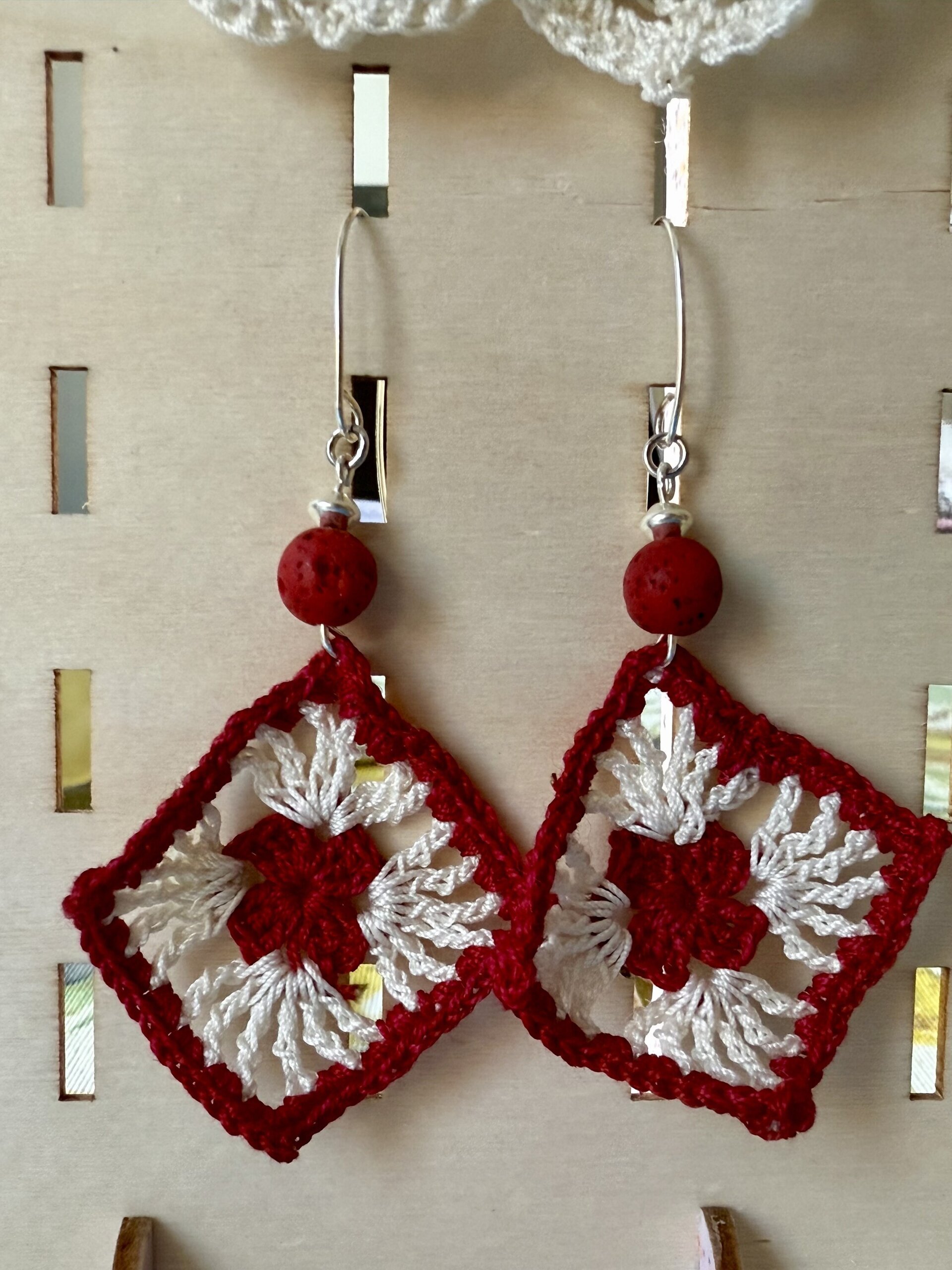 Pendientes navideños de ganchillo con plata 925, piedra volcánica y circonitas |