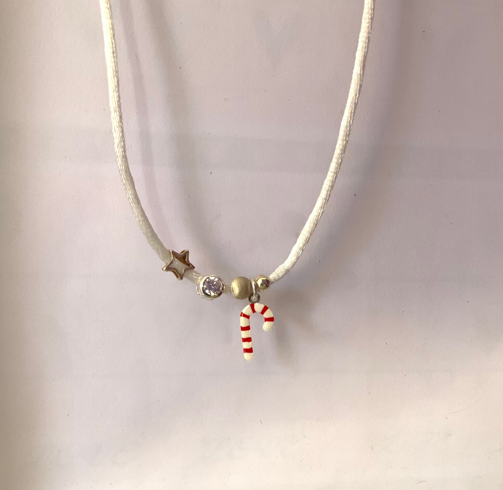 Collar Navideño de Antelina Blanca con Bastón de Caramelo y accesorios de plata.